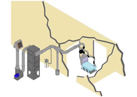 El sistema estará optimizado para aspirar en industrias que poseen la producción con celdas de trabajo; en donde el foco de generación de humos de soldadura se encuentra contenido dentro de un recinto cerrado o celda de trabajo. Estos equipos también pueden ser adaptarse para usarse en puestos fijos de trabajo abiertos mediante el uso de plenos de aspiración o accesorios de captación específicos según la aplicación.